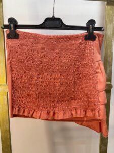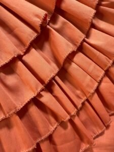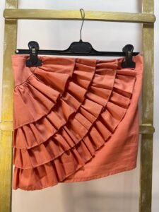 Top corto en color coral, con diseño de volantes en capas asimétricas que aportan dinamismo y un estilo moderno. Su corte juvenil y femenino lo hace ideal para combinar con faldas, pantalones de tiro alto o shorts, creando looks frescos y llamativos para cualquier ocasión casual o de verano