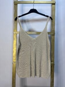 Top ligero en tono beige con tirantes finos y escote en V. Versátil y fresco, perfecto para combinar en looks casuales o como básico elegante